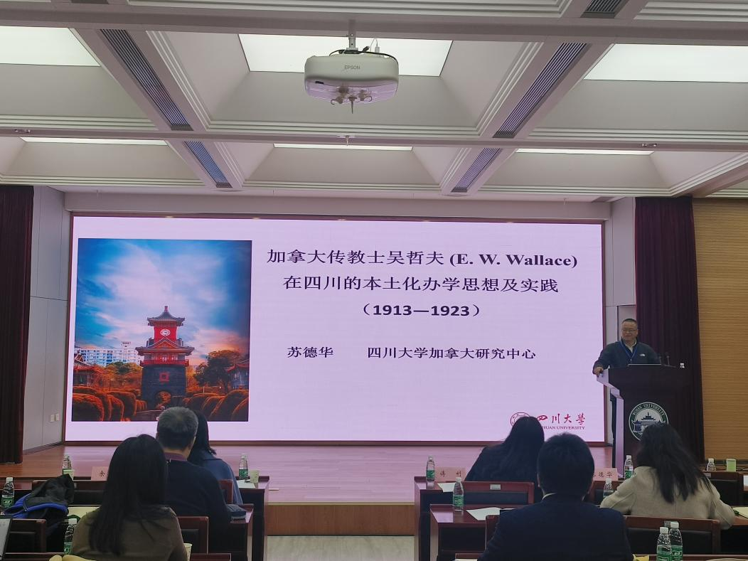 四川大学苏德华副教授的报告《加拿大传教士吴哲夫在四川的本土化办学思想及实践(1913-1923)》通过生平、 经历、 办学理念、办学实践及影响等方面向大家介绍了20世纪上半叶的加拿大传教士吴哲夫,向大家揭示了关于加拿大传教士鲜为人知的事迹,为加拿大研究提供了另一个值得挖掘的研究视角。
