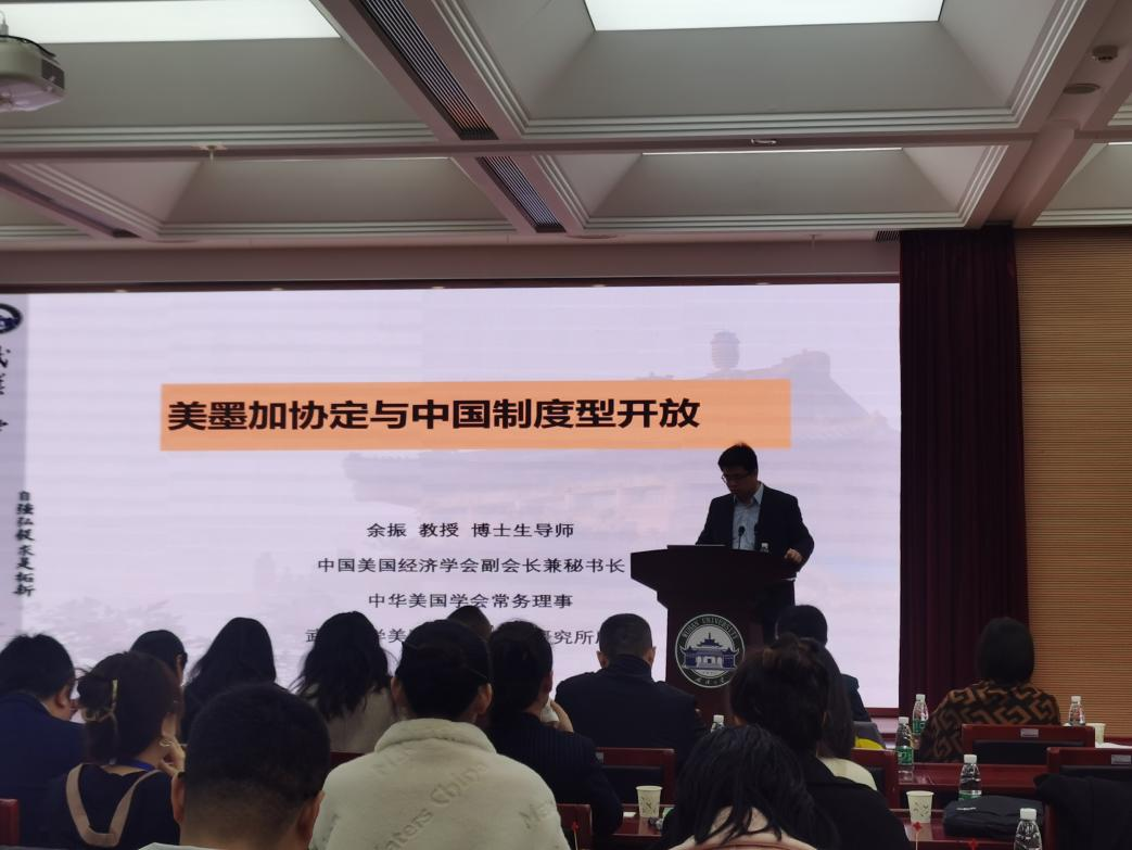 武汉大学余振教授的学术报告《美墨加协定与中国制度型开放》结合我国当下经贸现实,针对性地讲解了美墨加贸易协定相对于NAFTA的一些拓展条款,分析这些条款可能给我国经贸带来的影响和挑战,以及对我国经贸制度的调整和改革的启示。余教授还就应对措施提出了自己宝贵的建议,体现了作为一名学者对国家和社会的担当。