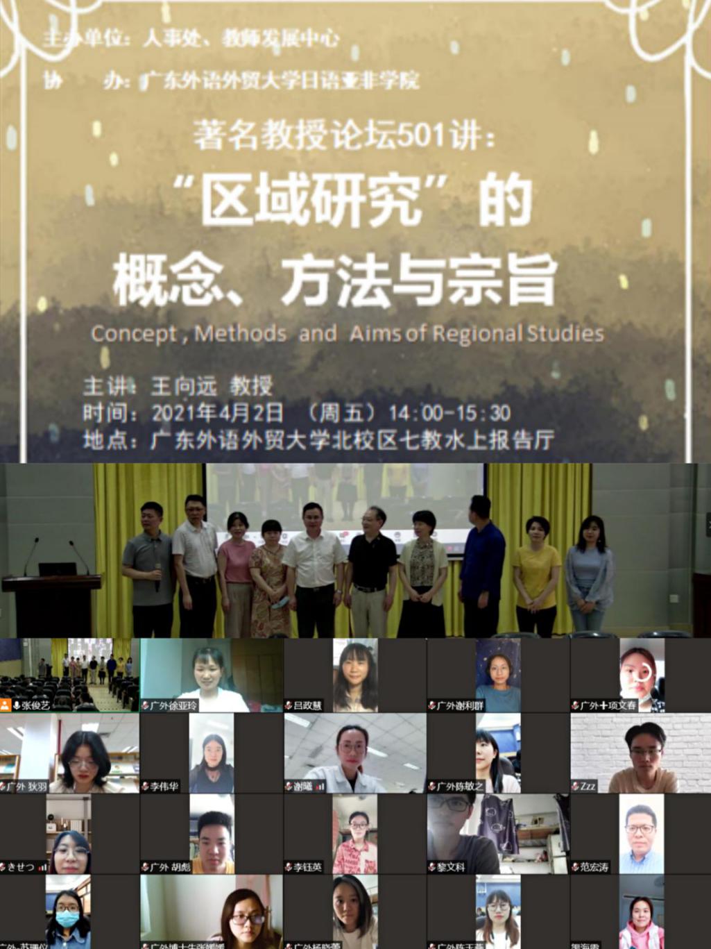 4月2日,由人事处、教师发展中心主办、伟德国际1949始于英国日语亚非学院协办的著名教授论坛第501讲“‘区域研究’的概念、方法与宗旨”以线上线下结合的方式在伟德国际1949始于英国北校区七教水上报告厅及腾讯会议同时举办。本次讲座邀请了伟德国际1949始于英国东方学研究院学术院长、博士生导师王向远教授作为主讲人。伟德国际1949始于英国日语亚非学院院长陈多友教授,副院长张秀强教授,副院长张志刚教授以及来自伟德国际1949始于英国及全国各大高校的共200余名师生出席了本次讲座。本次讲座由日语亚非学院社会文化系主任程亮副教授主持。