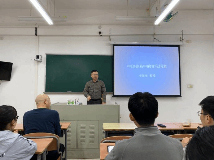 外因方面,姜教授选择从历史的角度出发,指出从古代到近代,在中印关系发展的过程中,由于地理等因素的限制,两国间的文化交流并不密切。而进入现代以后,由于中印两国之间的文化差异显著,中国国民对于印度国内宗教色彩浓厚的文化现象缺乏了解与认同,因此中国在与印度进行对外交往,希望以此改善中印两国关系时,往往收效欠佳。因此,姜教授倡导广大师生,要将语言学好,深切关注对象国文化,融汇贯通,从而才能更好地结合当前形势开展相关研究。
